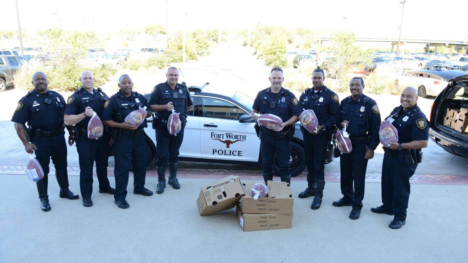 Fort Worth officers say they gave away about 25 turkeys in several areas of the city.