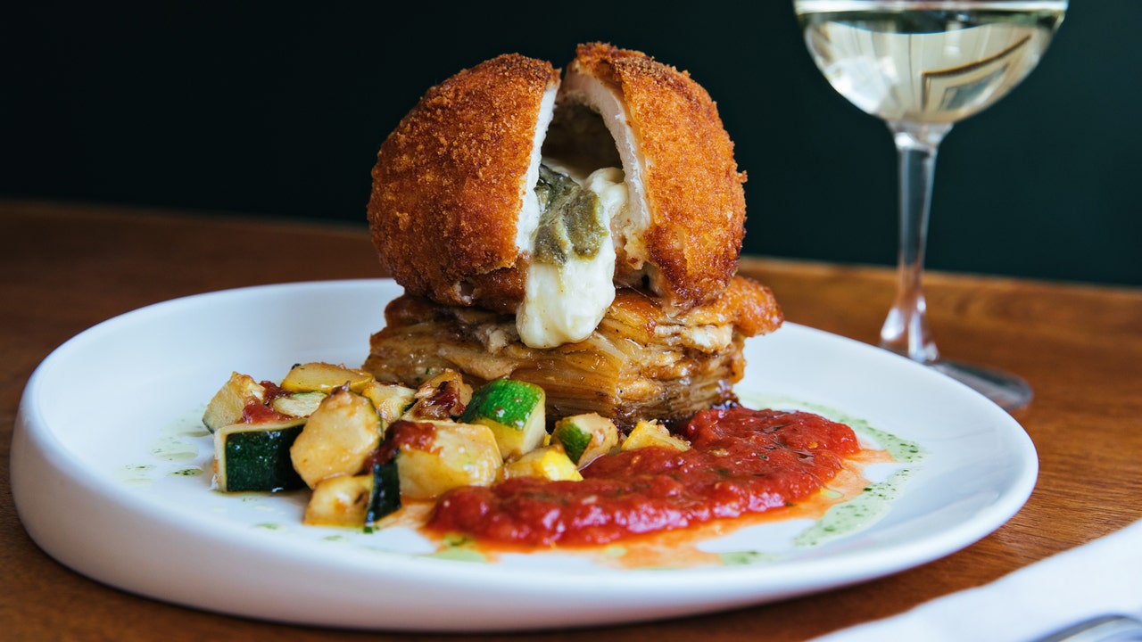 Cru Cafe’s Mozzarella and Poblano Fried Chicken is loosely based off Chicken Cordon Bleu, but with a Southern twist, Executive Chef John Zucker tells Fox News. (Andrew Cebulka Photography)