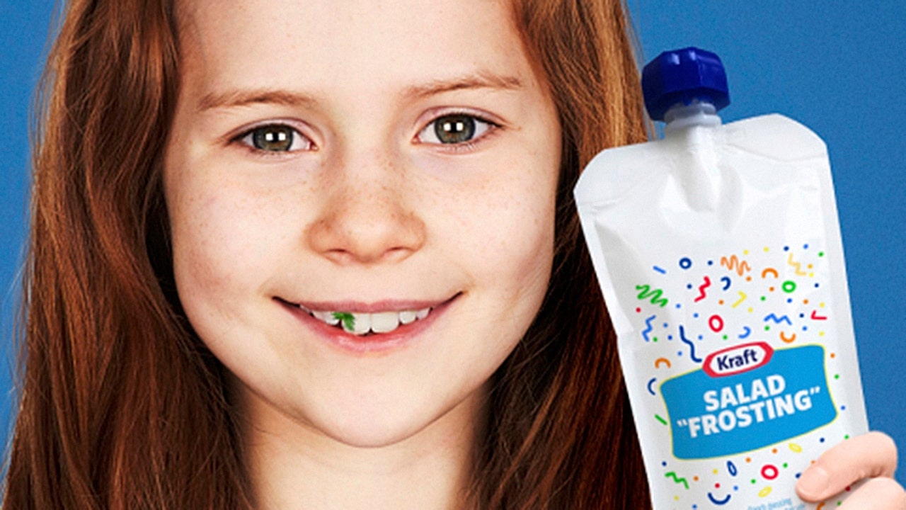 Some combinations are a match made in heaven: peanut butter and jelly, cookies and milk. And now another power flavor duo is making an entrance, vegetables and frosting, as Kraft has unveiled its new kid-targeted product, “Salad Frosting.”