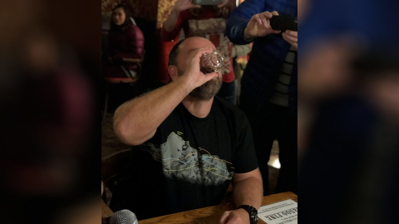 Nick Griffiths elicited cheers from the crowd as he took his "Sourtoe Cocktail" shot. (Yukon Hotels)