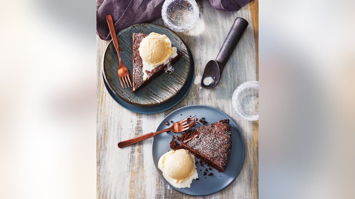 - Dust with additional cocoa or powdered sugar. Serve with ice cream or sweetened whipped cream, if desired.