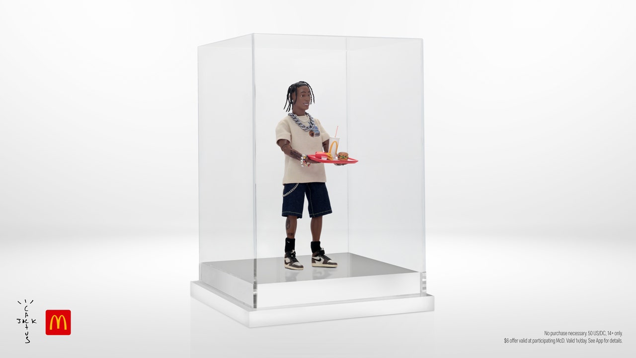 Travis Scott action figures were originally created for promotional purposes to coincide with his debut album “Rodeo.” More recently, McDonald’s featured an “updated” version of the figure’s likeness in an ad for Scott’s signature McDonald’s meal, which is currently available at the chain for $6 when ordered via the company’s app.
