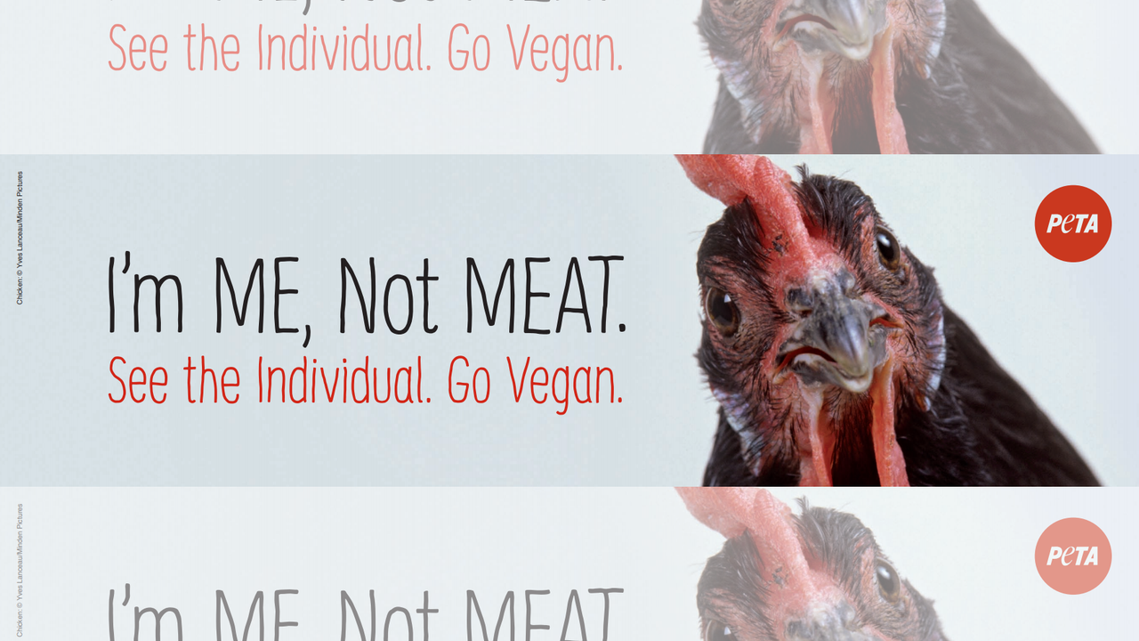 The billboard, planned for a stretch of Highway 18, will feature the face of a chicken alongside a message reading, “I’m ME, Not MEAT,” and “See the Individual. Go Vegan.”