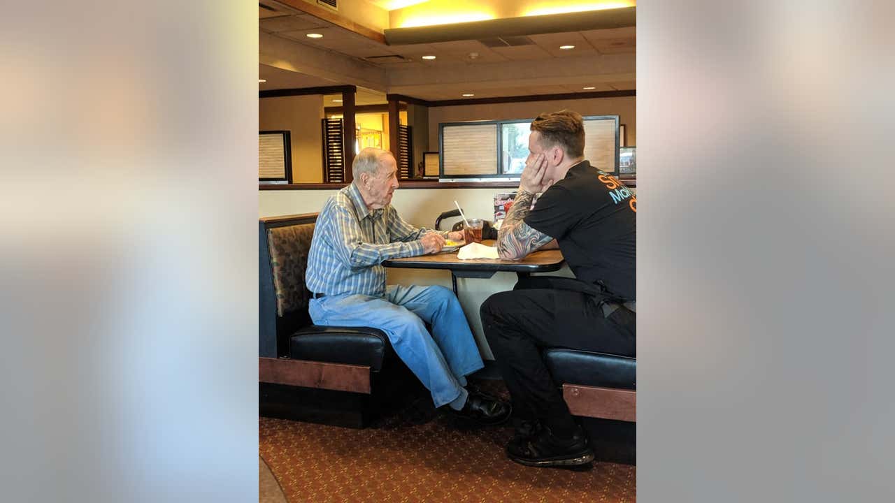 A restaurant server shared a heartwarming moment with a 91-year-old WWII veteran that has gone viral on social media.