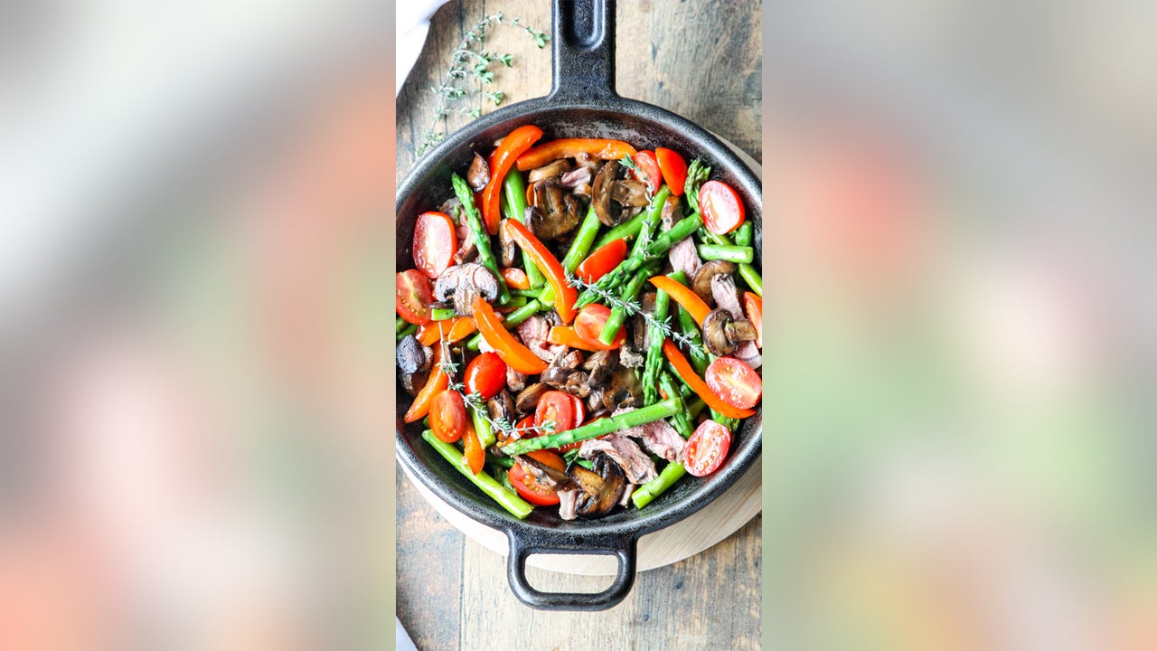 "I was inspired to create a recipe that showcased the beautiful summer produce that’s so abundant at this time of year, especially asparagus," says Colleen Milne of thefoodblog.net. "I also wanted a quick and easy dinner idea for busy weeknights. This steak and asparagus stir-fry comes together in just 20 minutes, all in one pan, and it’s a delicious and economical way to use a steak. Serve it on its own or with rice or noodles."