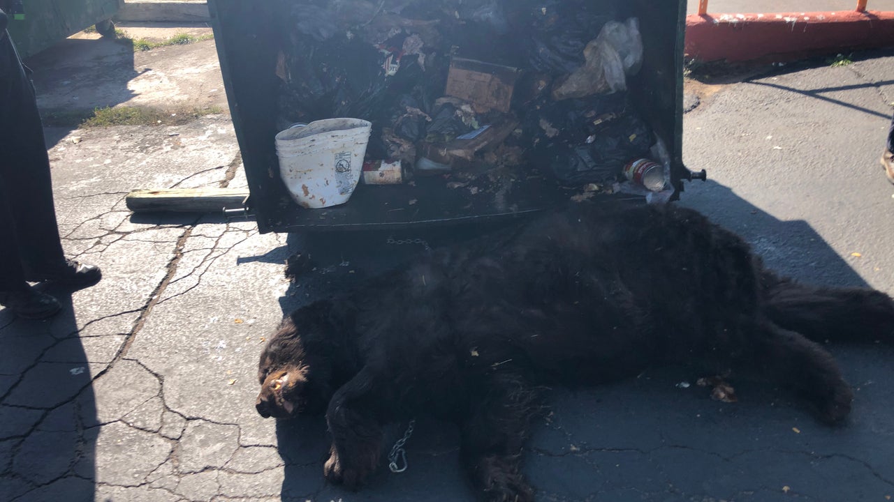 After wildlife officers tranquilized it and tipped the dumpster over, they saw the bear was having trouble breathing and “was in serious distress,” Vogrin said.
