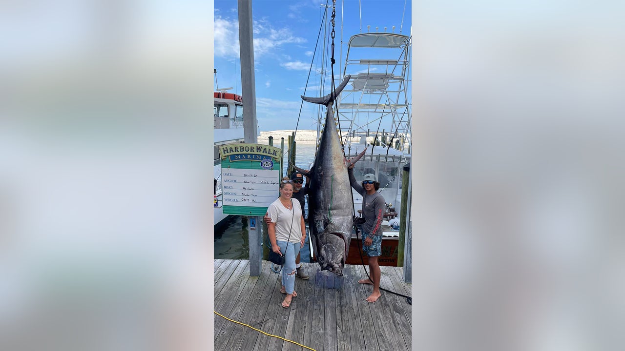 Fishermen on the boat No Name caught an 832-pound bluefish tuna in the Gulf of Mexico on April 17, according to a Facebook post by HarborWalk Marina in Destin, Florida, where the fish was caught.