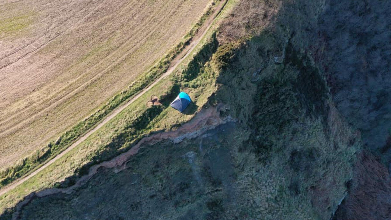 North Yorkshire Police called it "completely irresponsible" to pitch a tent so close to the cliff’s edge and a clear breach of COVID-19 restrictions to intend to camp overnight.