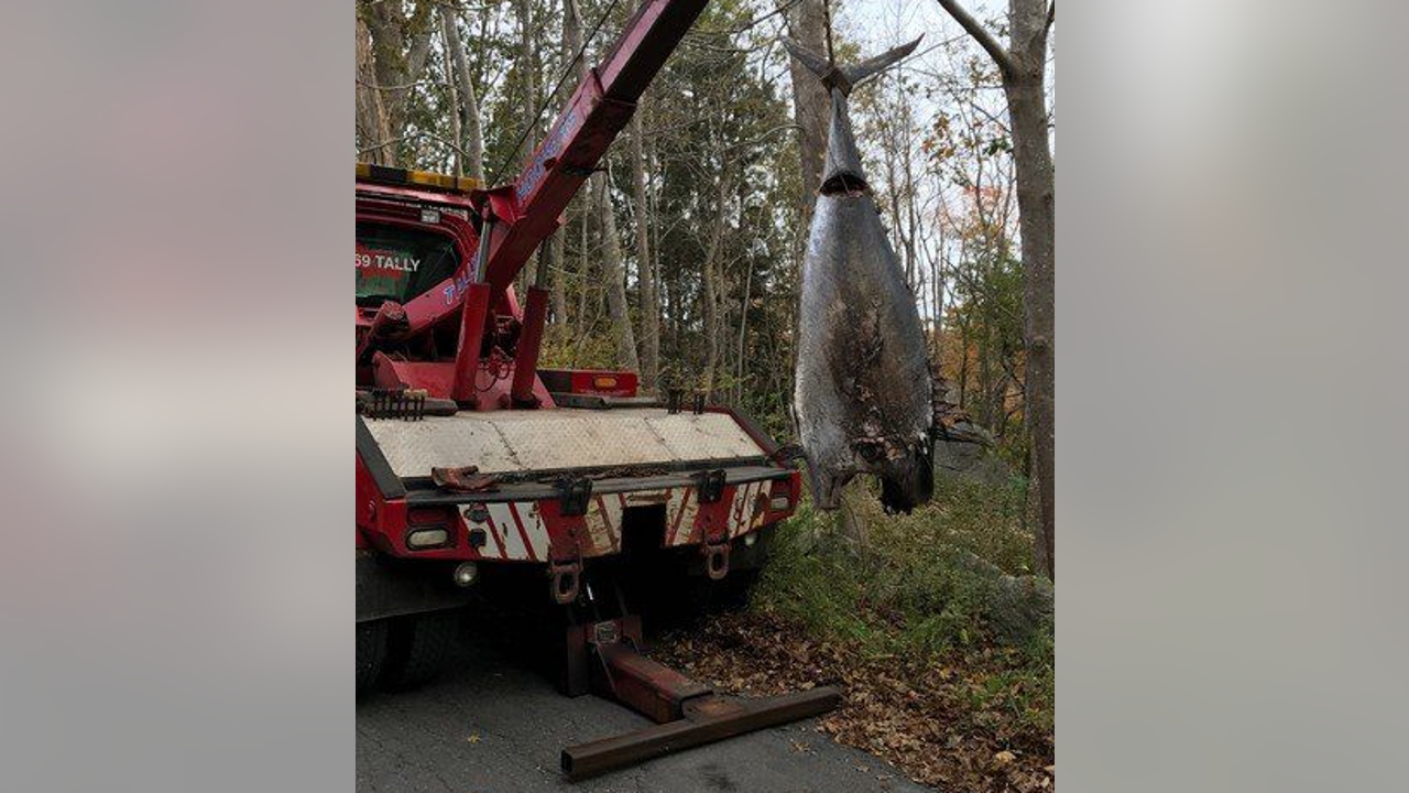 After it was found in 2017, local fishing authorities confirmed the tuna was illegally harvested, and it was hauled from the woods by a towing company. (Merlin Hunt)