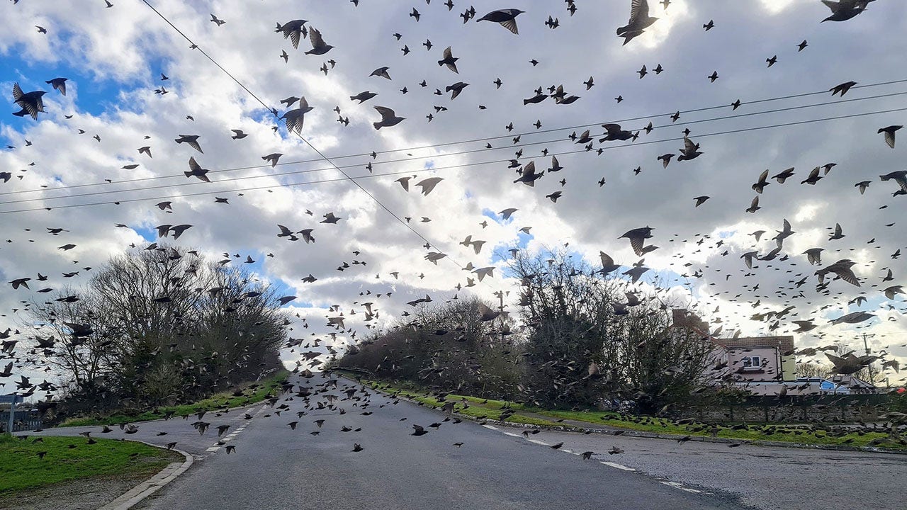 Jamie Kingscott, a wildlife relief coordinator for the Secret World Wildlife Rescue, was on his way to work when he took the picture, Southwest News Service (SWNS) reports. According to him, the birds were flying in a murmuration (a large number of birds flying in intricately coordinated patterns) very low to the ground.