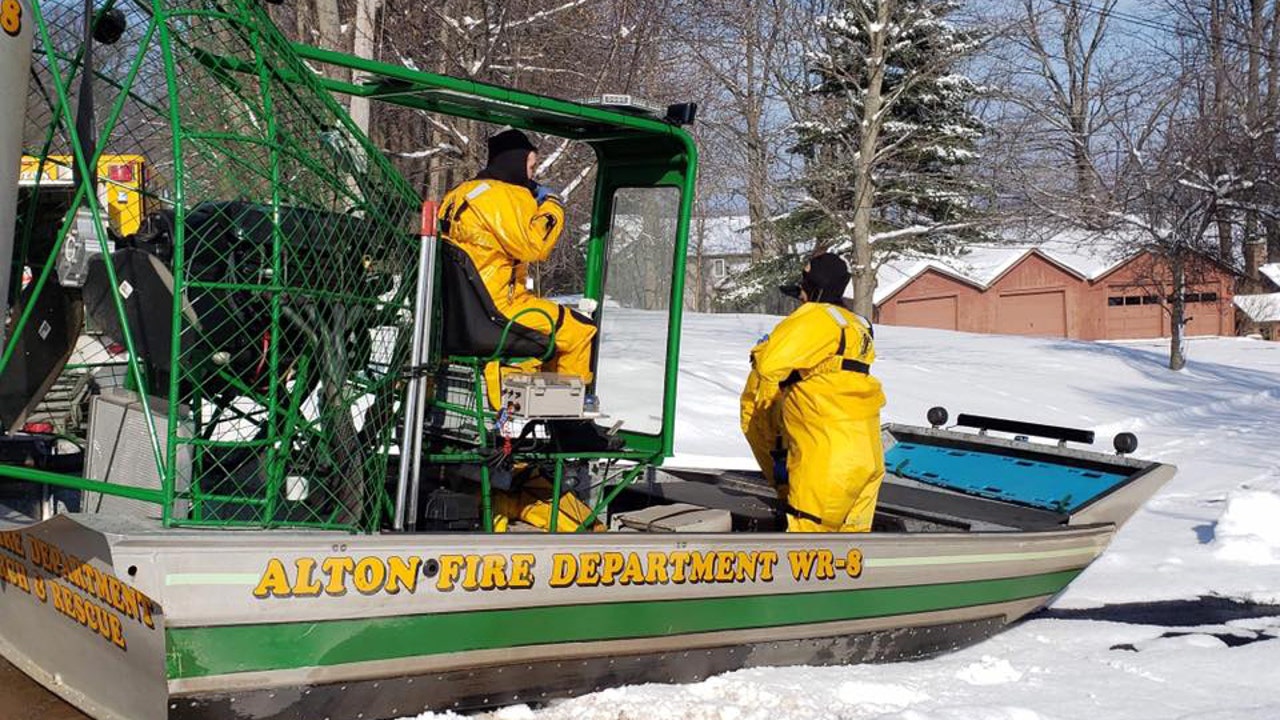 Photos shared by the Alton Fire Company show emergency responders pulling the boat onto the ice from a nearby road.