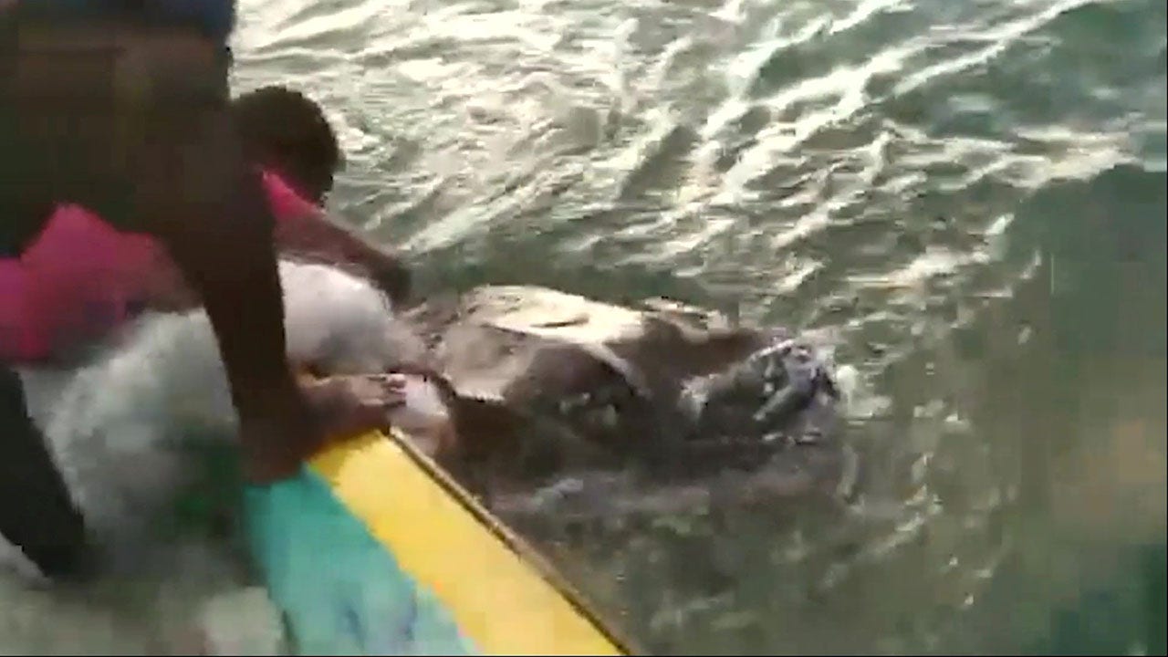 The incident occurred off the coast of Tamil Nadu, Southwest News Service (SWNS) reports. The turtle was identified as a leatherback that weighed approximately 1,300 pounds.