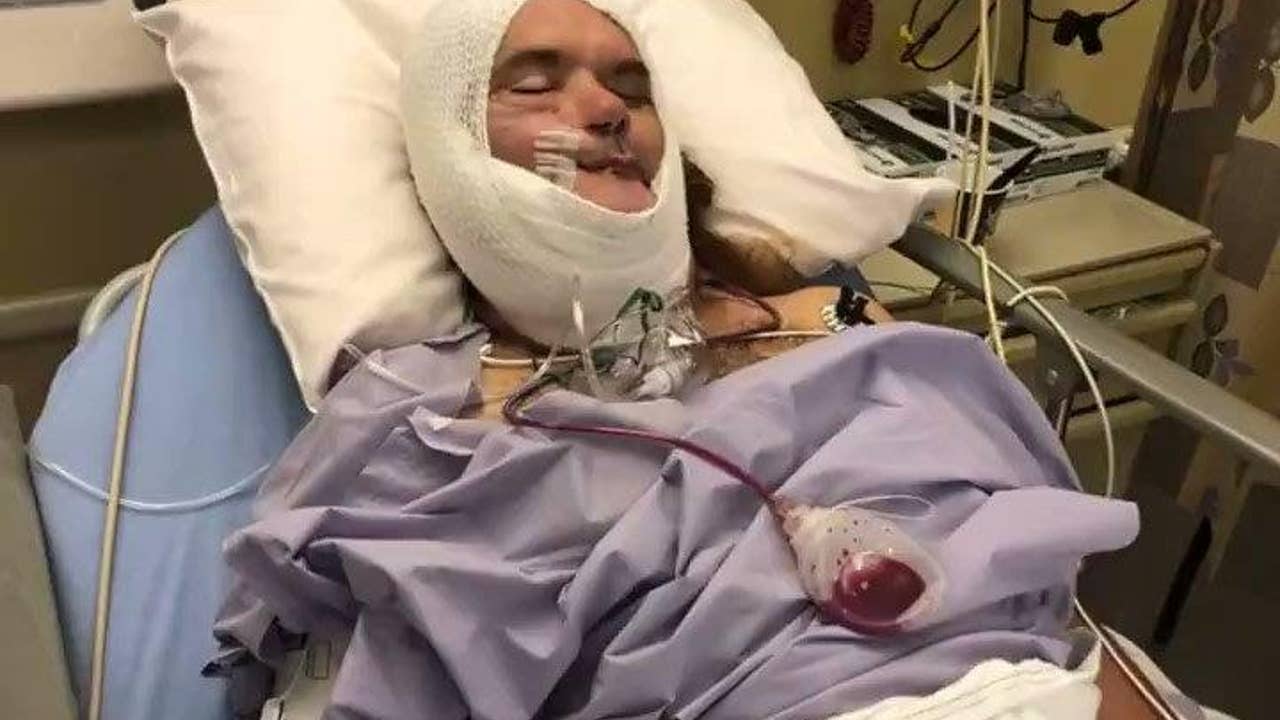 The dizzying number of surgeries has left Newtown with deep facial and neck lacerations, a sagging eyelid and chin, no right ear, and only a few teeth left.