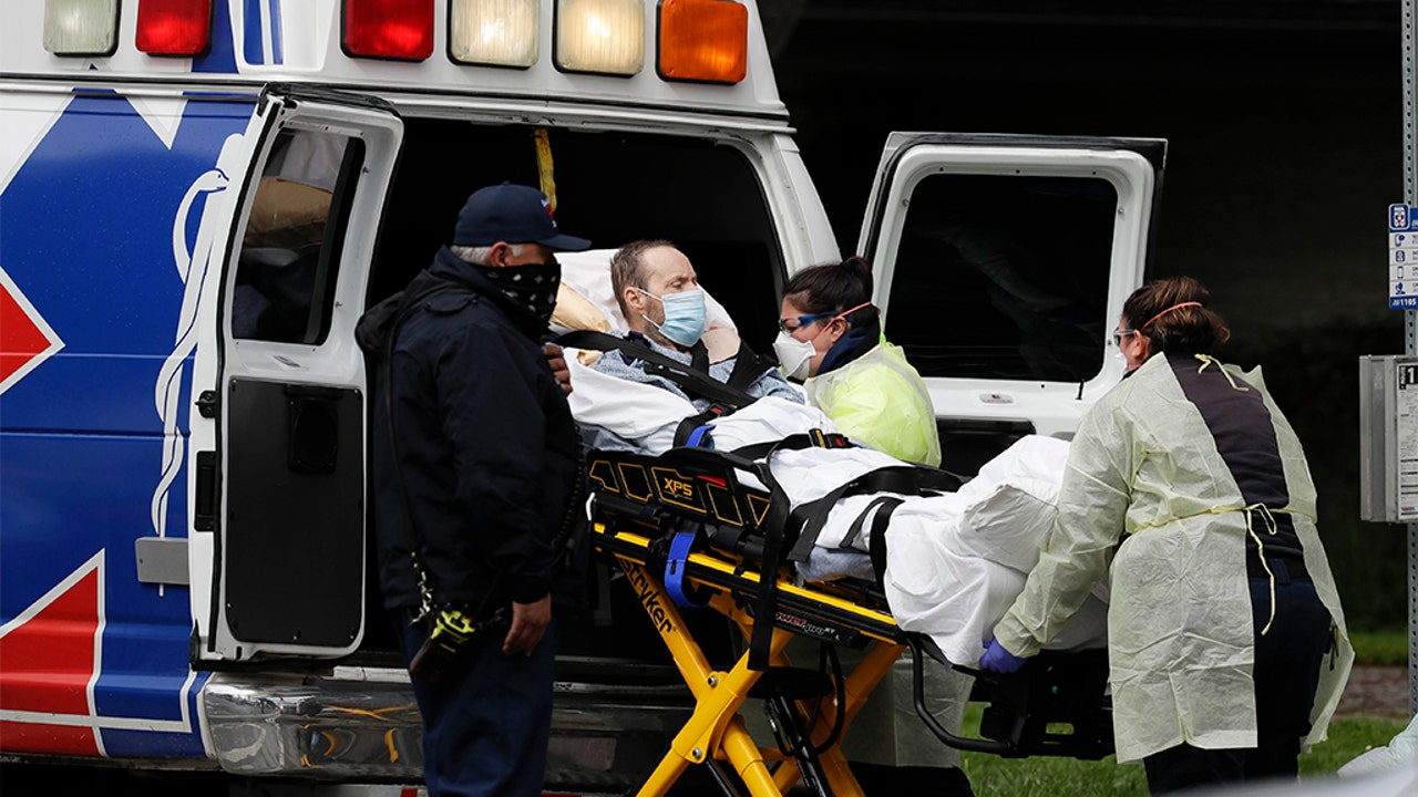 A patient is evacuated from the Magnolia Rehabilitation and Nursing Center in Riverside, Calif., Wednesday, April 8, 2020. (AP Photo/Chris Carlson)