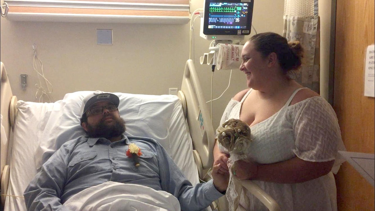 But rather than reschedule their big day, the couple got married at his bedside with the help of a friend who is an ordained minister.