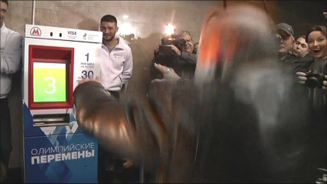Vending machine gives free subway ticket in return for 30 squats in run-up to winter Olympics.