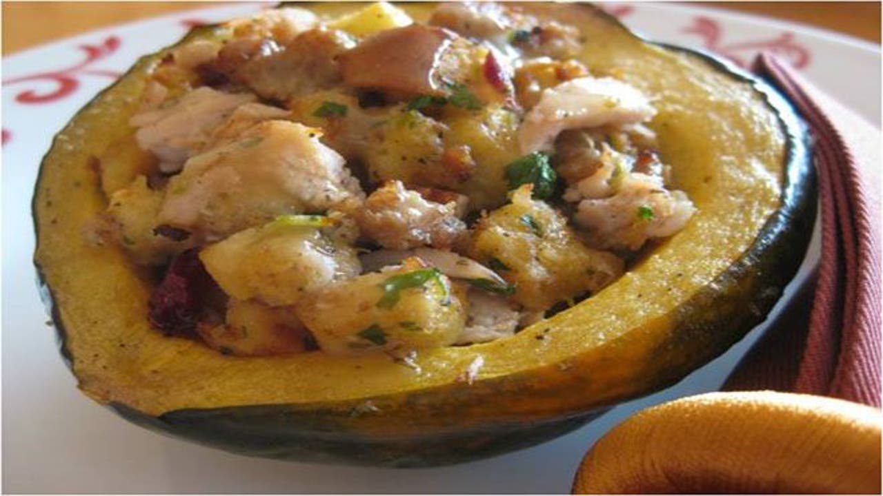 5. Then stuff acorn squash with turkey mixture and bake for an additional 15 minutes.
