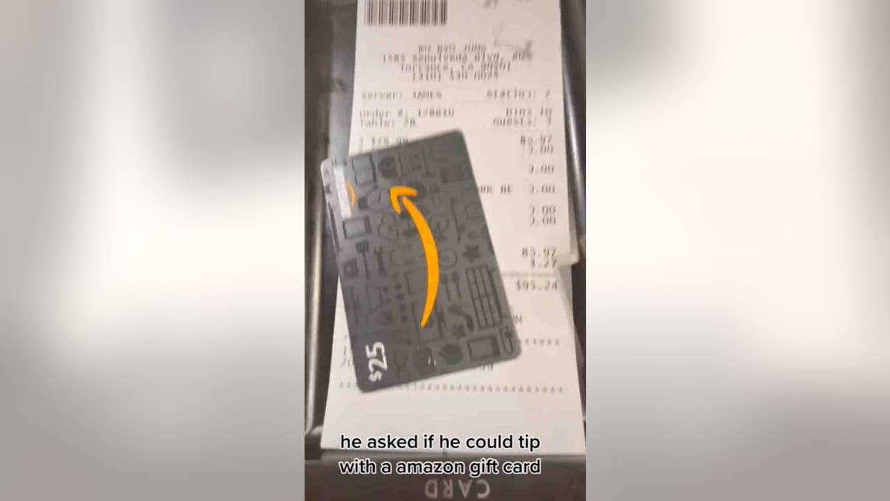 "My brother wanted to contribute somehow, so he offered to tip with the Amazon gift card," Lombera said. "Our waiter was super nice, we loved him…so my brother thought a $25 gift would be a good tip."