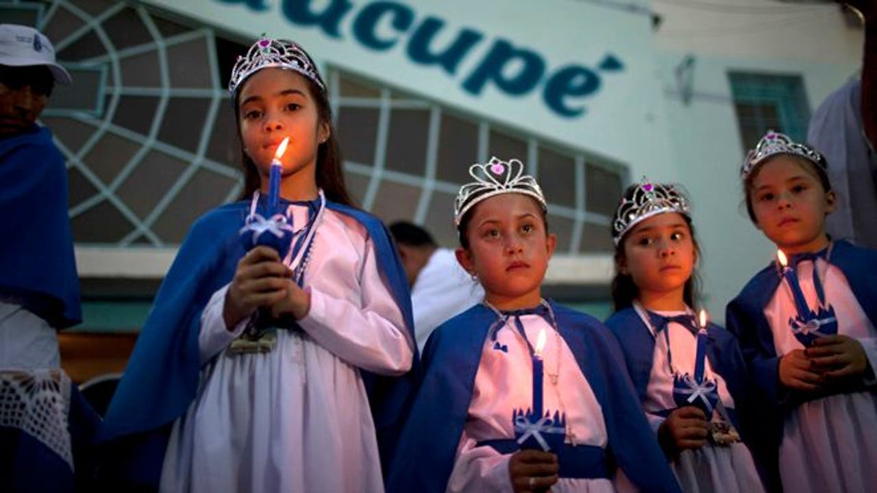 Padre Toto, one of many "slum priests" long supported by Francis, led thousands in this year's procession on Sunday, walking all day long through suffocating heat and humidity. He blessed humble homes decorated with flags and balloons with water from a plastic jug, and hugged victims of violence. Many people put up altars to the virgin, and some displayed the image of Francis, "the pope of peace."