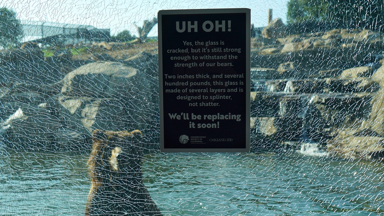 “Yes, the glass is cracked but it’s still strong enough to withstand the strength of our bears,” a sign posted on the damaged glass read. "Two inches thick, and several hundred pounds, this glass is made of several layers and is designed to splinter, not shatter. We'll be replacing it soon."