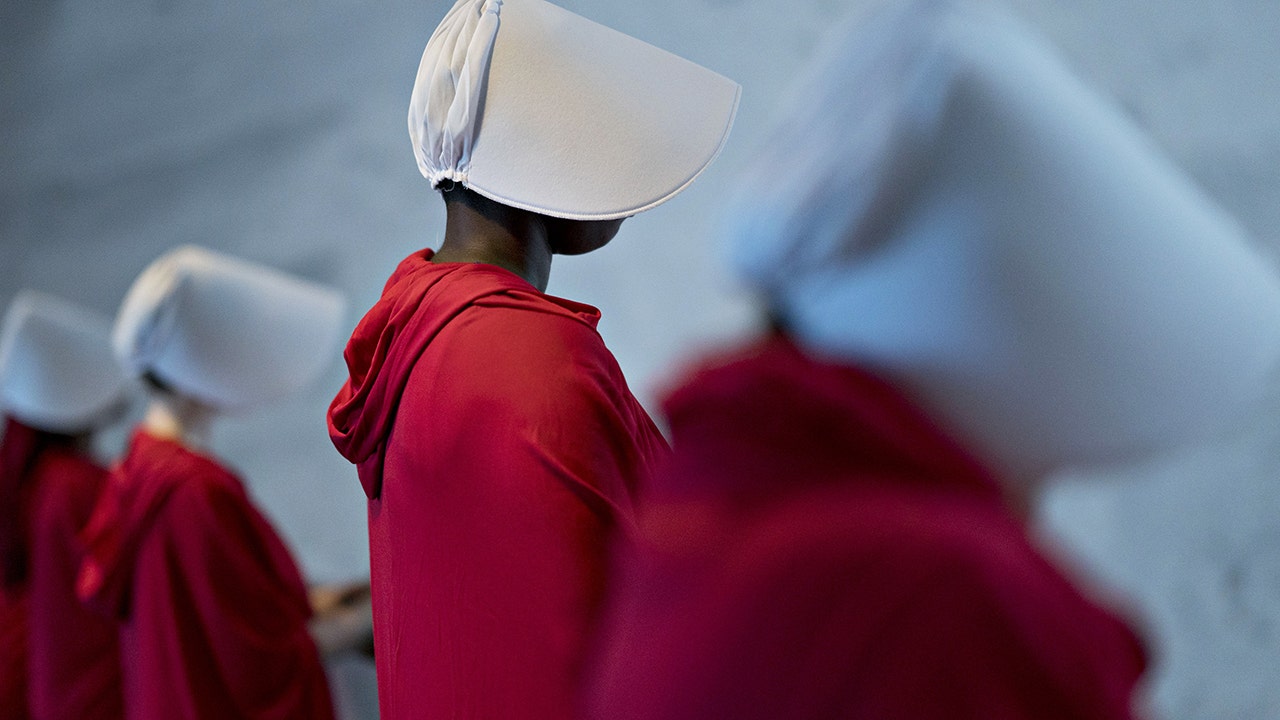Leah Hampton is seen dressed head to toe in the "Handmaid’s Tale" uniform, which is worn by the women of Gilead, the fictitious and dystopian society of the popular Hulu series and the original book.