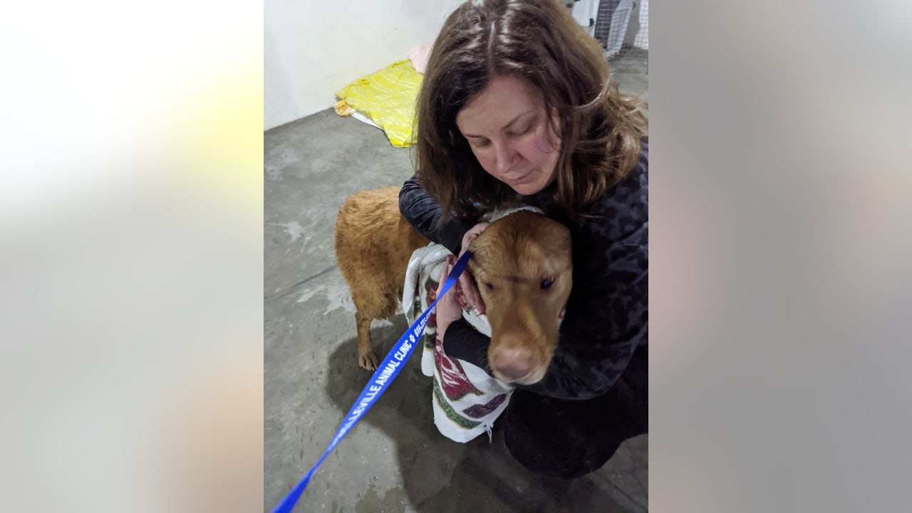 Olson and her pup, reunited after nearly a year apart. (Gay Arnold/Lost Paws Trapping)