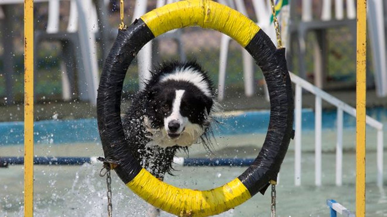 Dogs of all breeds, ages and sizes competed for medals in diving, jumping, swimming and running at Toto's Park Club in the Rio de Janeiro neighborhood of Barra da Tijuca.