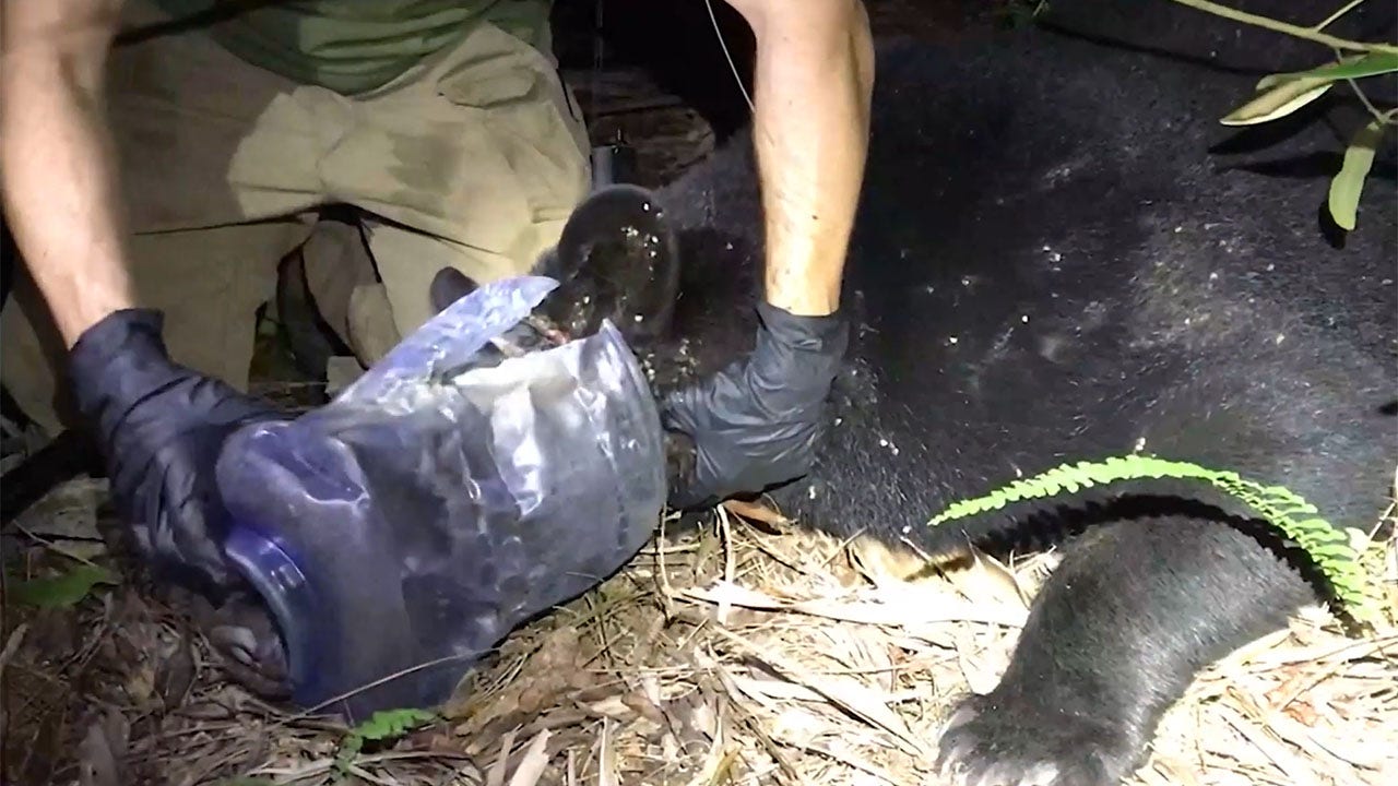 "Finally, the bear was spotted on a resident’s security camera, still wearing the container on its head," FWC wrote on Facebook. "Staff set new traps and started night patrols of the neighborhood. They finally spotted the 250lb female bear just before midnight. The bear biologist darted her and removed the plastic container from around her face."
