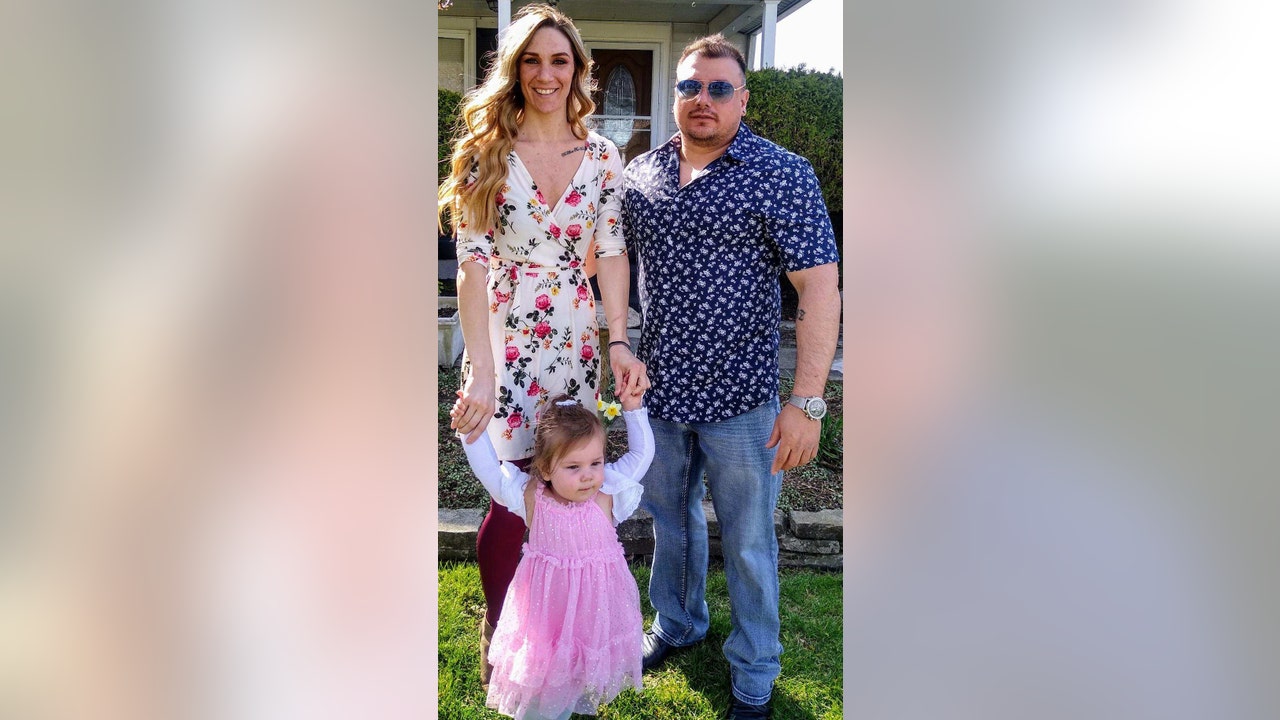 Giedeman, pictured left with her boyfriend Stephen Lopez and their daughter Carmella, told Fox News that "Brian saved her, but really in reality, he saved all of us." (Courtesy of Mary Giedeman)