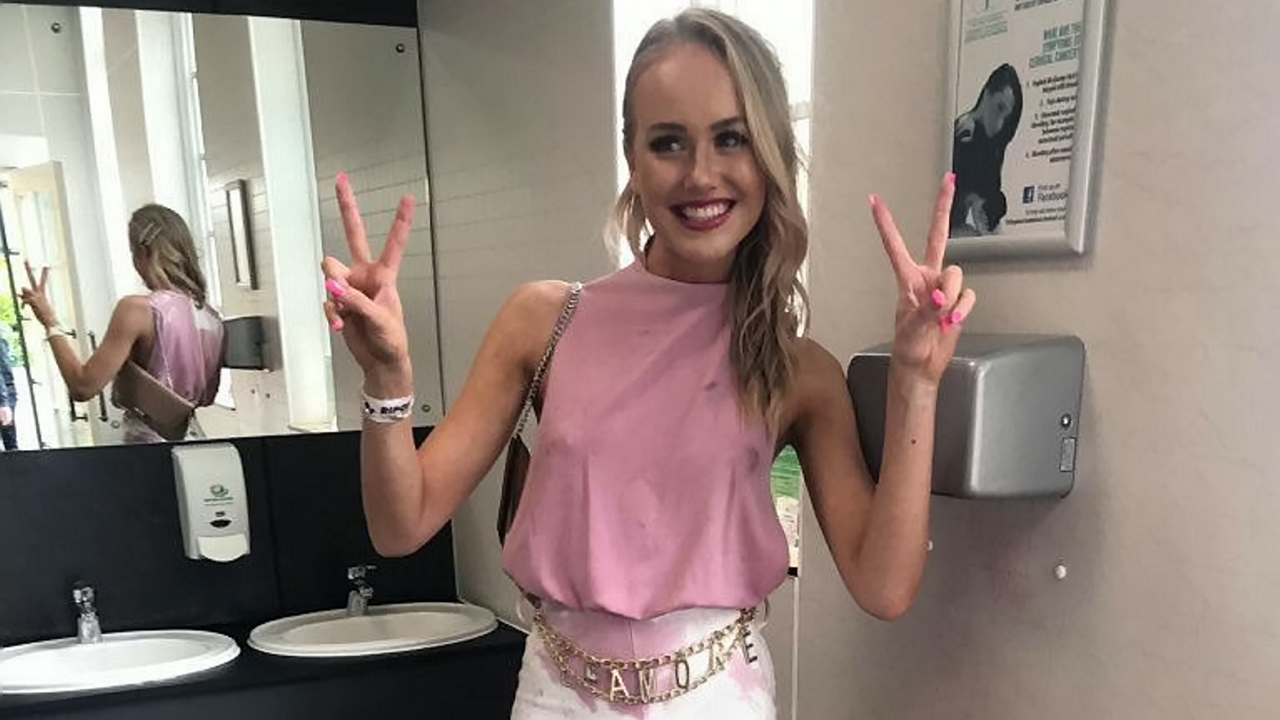 Walton’s flair for fashion began making headlines earlier this month, after she and several friends visited the Ripton Races racetrack in North Yorkshire, England, and a stranger accidentally bumped into her, causing her to spill red wine all over her white jumpsuit. Instead of going home or changing, Walton and her friend Mia Williamson, 18, came up with another idea entirely: Dye the rest of her outfit pink to match — using more red wine.