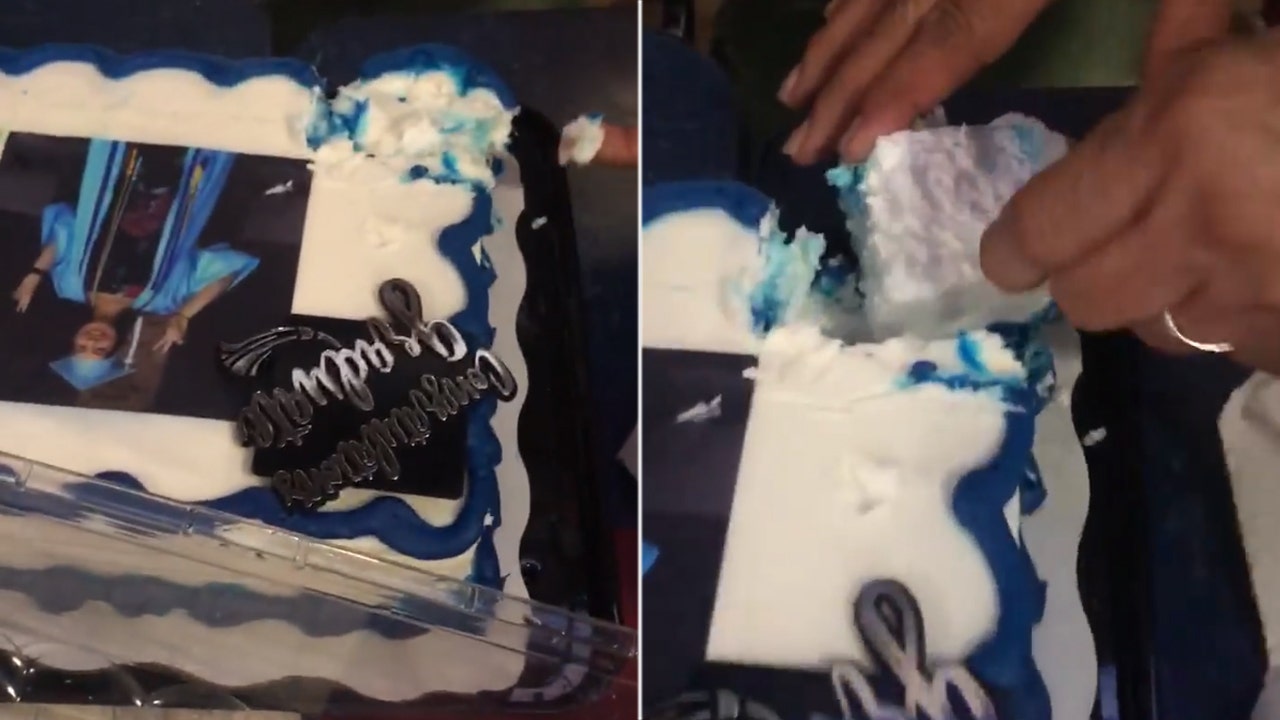 Nellie Flores posted a video to Facebook on Friday that showed the moment her sister, Marsy Flores, cut into her daughter’s graduation cake only to find that that it was actually a piece of Styrofoam covered in frosting with a picture of the graduate as decoration.