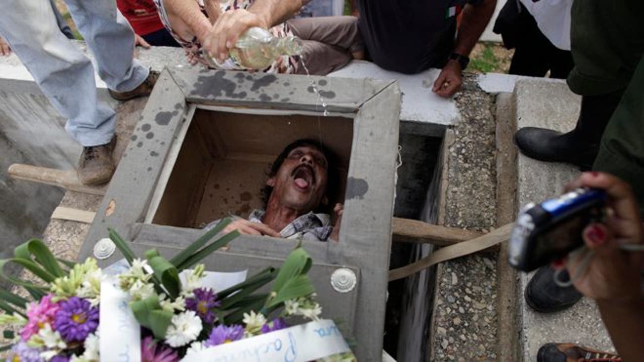 SANTIAGO DE LAS VEGAS, Cuba (AP) – Cuban villagers staged a mock funeral and burial of a living man this week in a boozy festival that has become an annual tradition in a small town near Havana.