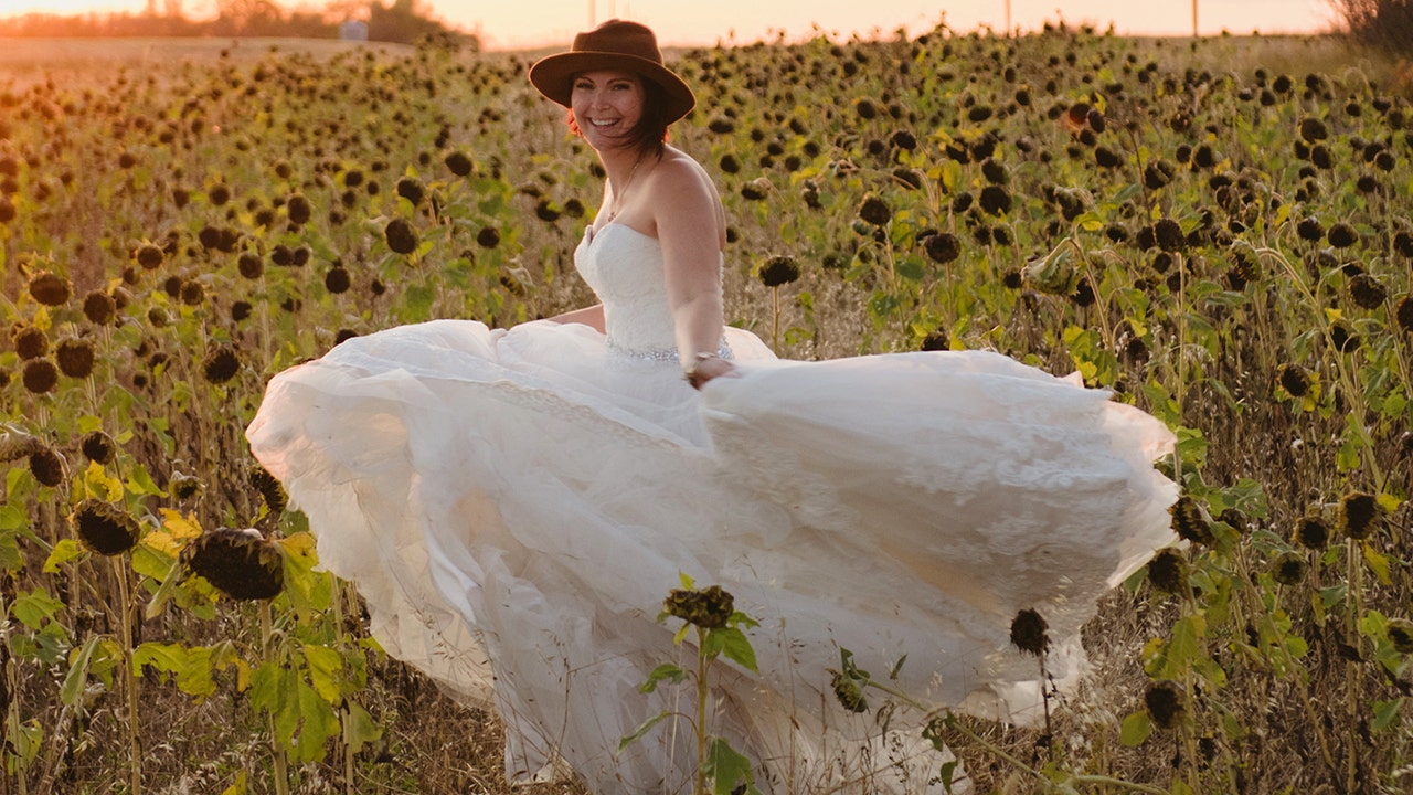 A young widow poses in her wedding dress every year in memory of her late husband who passed away after just two years of marriage.