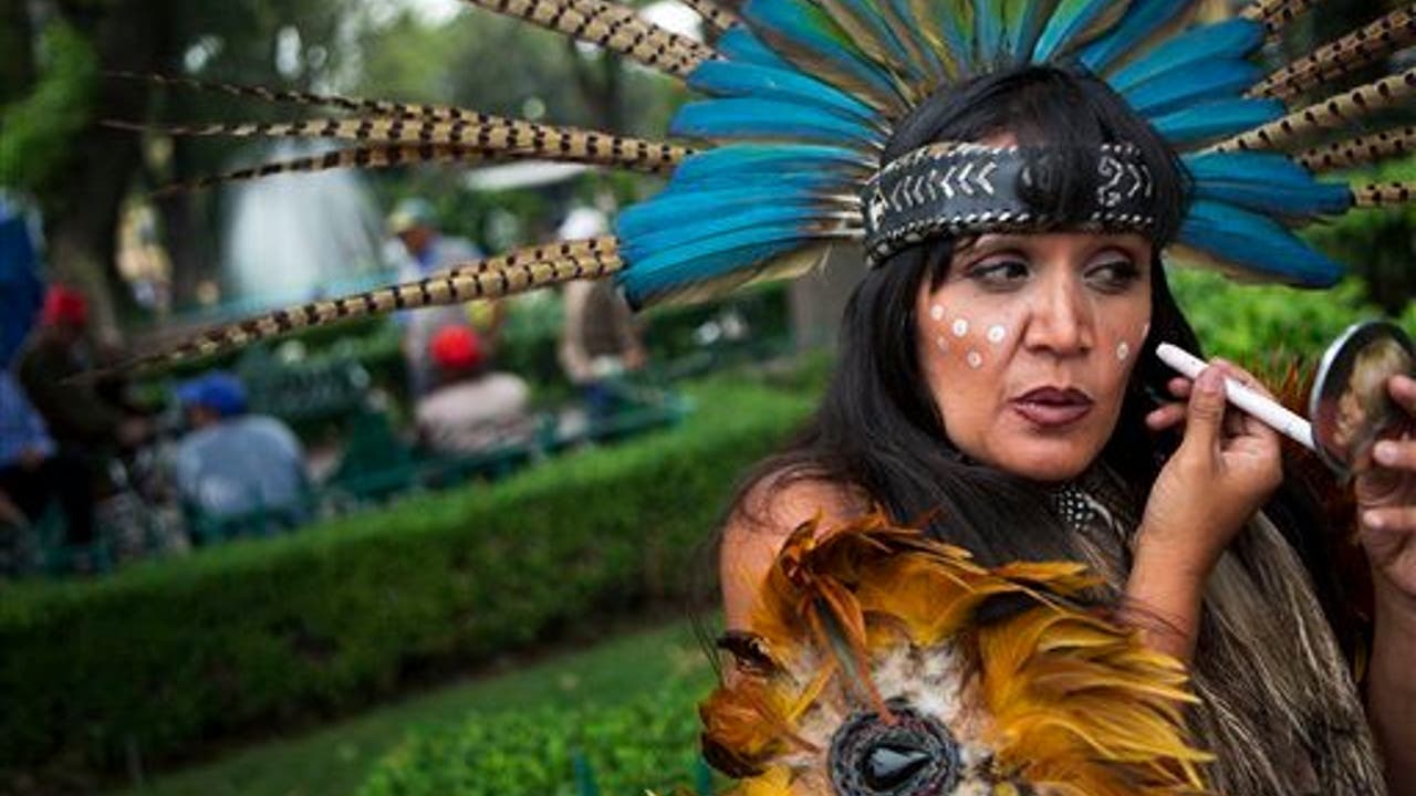 In the plaza, stalls sell everything from CDs to tacos to children's clothes, and performers dressed in Aztec garb offer blessings to passers-by, wafting them with incense and blowing into a conch shell.