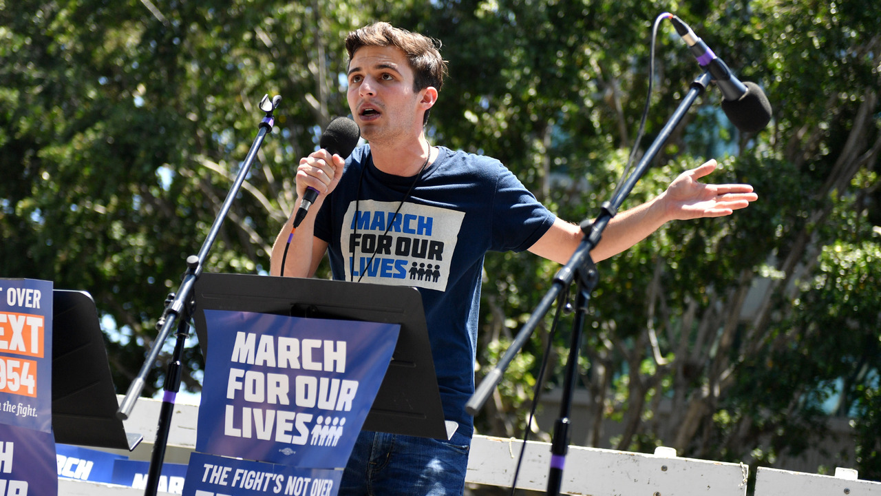 Cameron Kasky, co-founder of the student-led gun violence prevention group Never Again, speaks at the March For Our Lives II to protest gun violence June 11, 2022, in Los Angeles. (Sarah Morris/Getty Images)