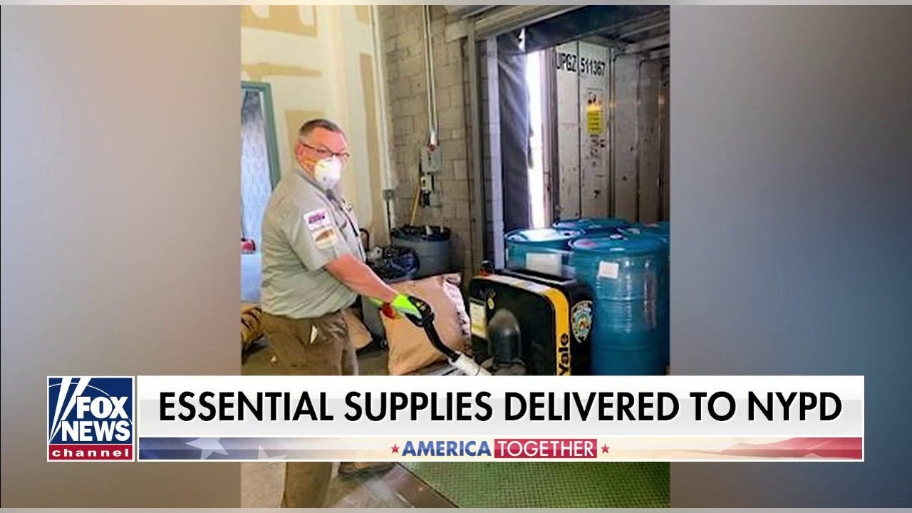 He added: "What a great opportunity to grab this trailer load -- 88 drums of hand sanitizer -- and deliver it to the NYPD. ... We've done two shipments already. That's almost 10,000 gallons."