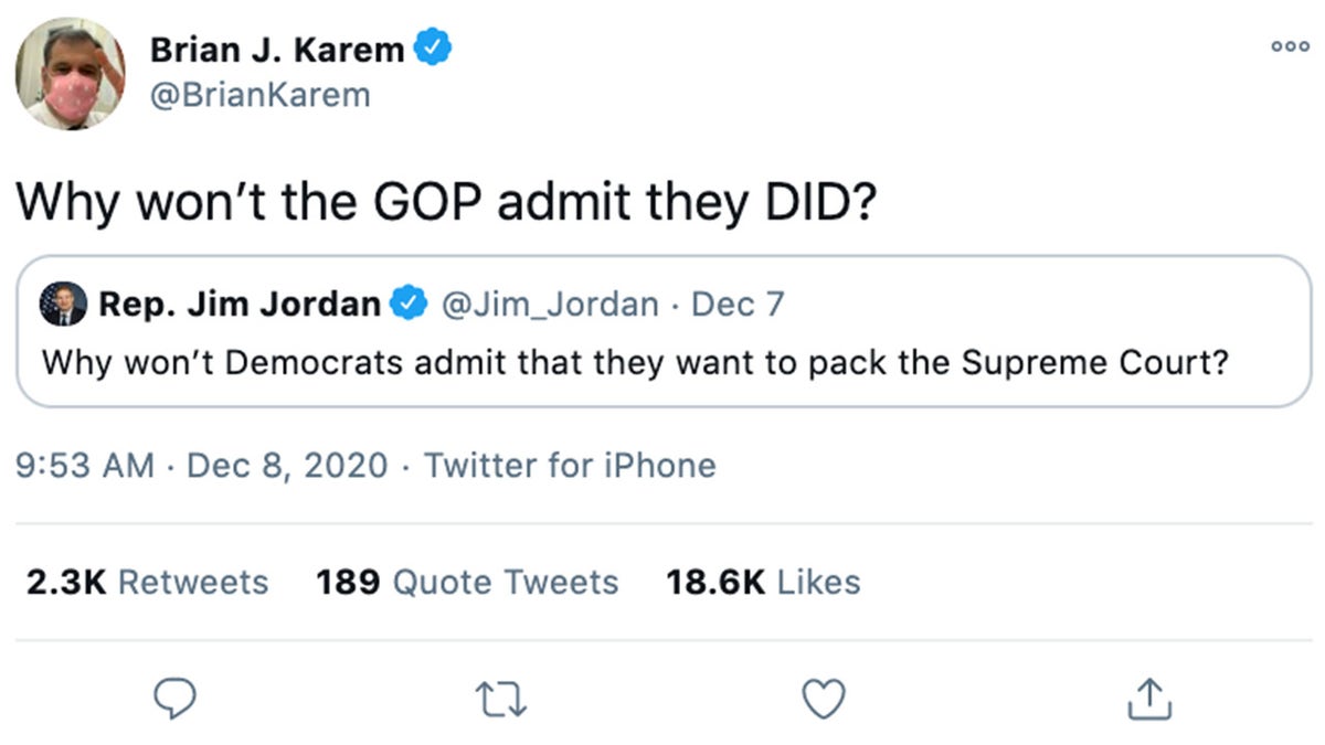 It started when Rep. Jim Jordan, R-Ohio, tweeted, “Why won’t Democrats admit that they want to pack the Supreme Court?”