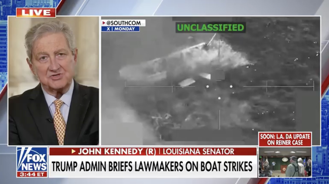 Sen. John Kennedy, R-La., said during a Tuesday appearance on the Fox News Channel that his takeaways from the briefing included that the strikes "are legal" and "effective," that they are based on "exquisitely good" intelligence, and that "checks and balances" are in place to ensure "innocent people who just happen to be in a boat are not hurt."
