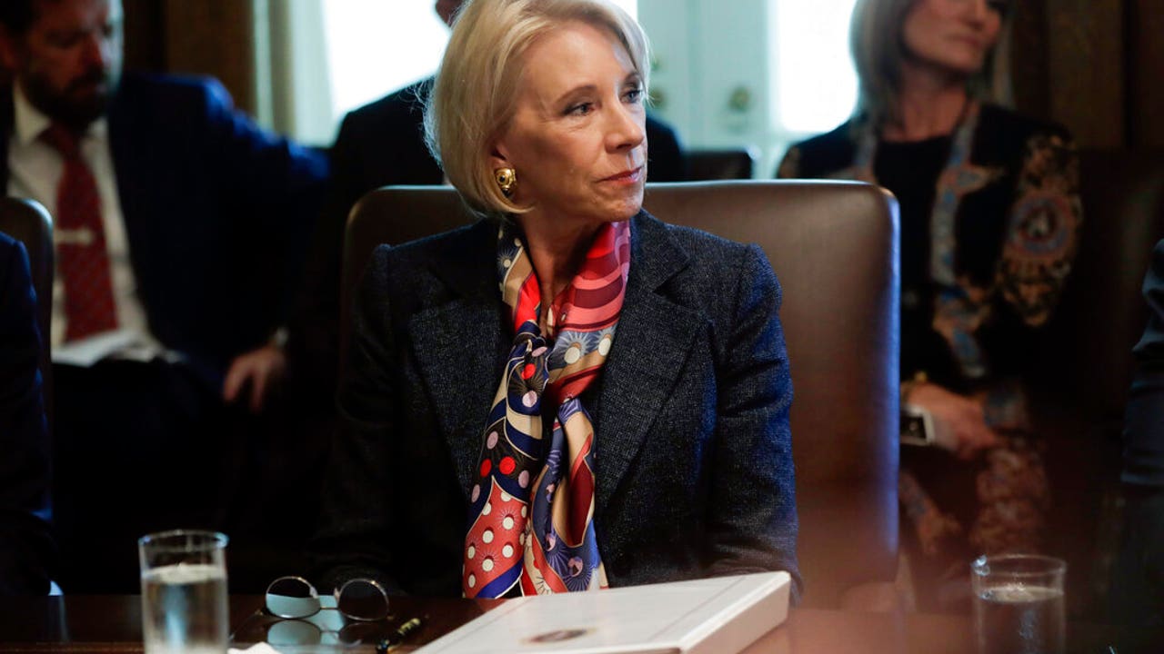 Education Secretary Betsy DeVos listened to President Trump during an October cabinet meeting at the White House. (AP Photo/Pablo Martinez Monsivais, File)
