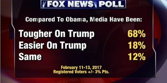 Some 68 percent think the press has been “tougher” on Trump than Obama. That’s more than three times the number who think reporters are giving him an “easier” time (18 percent). Another 12 percent see treatment of the two as the same.