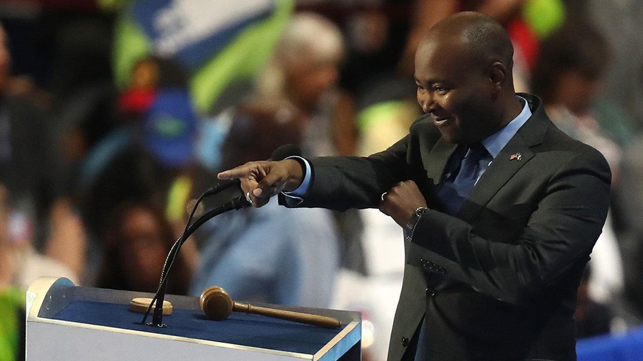 South Carolina Democratic Party Chair Jamie Harrison gesturing to the crowd during the fourth day of the Democratic National Convention at the Wells Fargo Center, July 28, 2016, in Philadelphia. (Joe Raedle/Getty Images, File)
