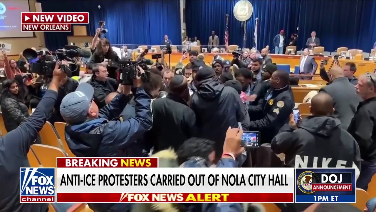 A New Orleans City Council meeting was thrown into chaos Thursday as anti-ICE protesters stormed the chambers, shouted down officials and clashed with police.
