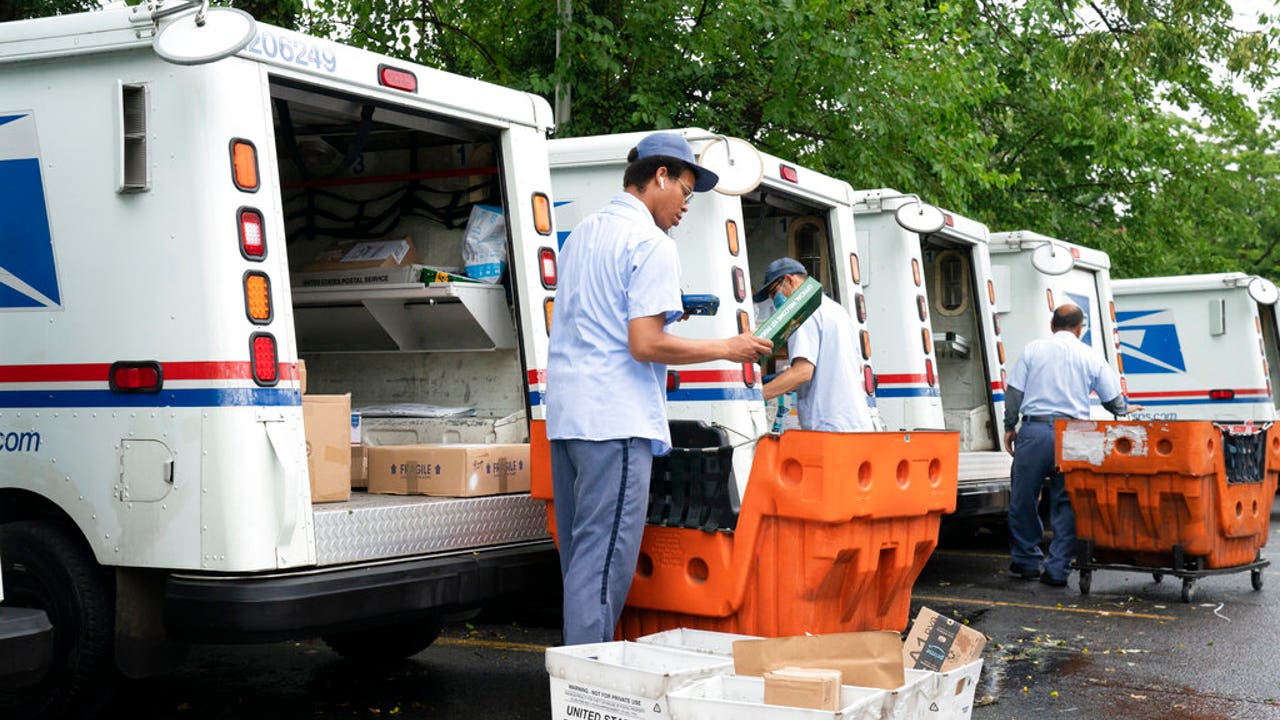 Letter carriers load mail trucks for deliveries at a U.S. Postal Service facility in McLean, Va. (AP Photo/J. Scott Applewhite)