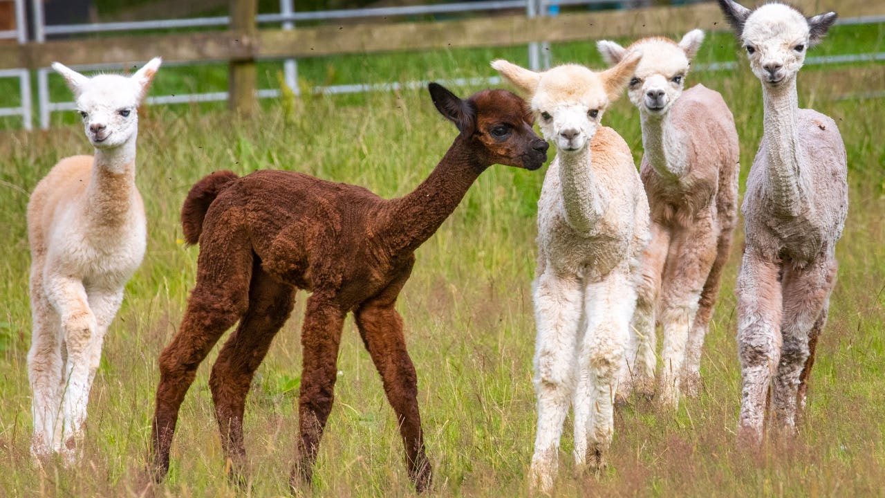 The five alpacas, known as Mr. Softee, Casey, Sahara Foncé, Qilaut and Akoya, were all born within the past few weeks, according to British news agency SWNS. Mr. Softee, the youngest, was born on July 19, while Casey, the oldest, was born on May 29.