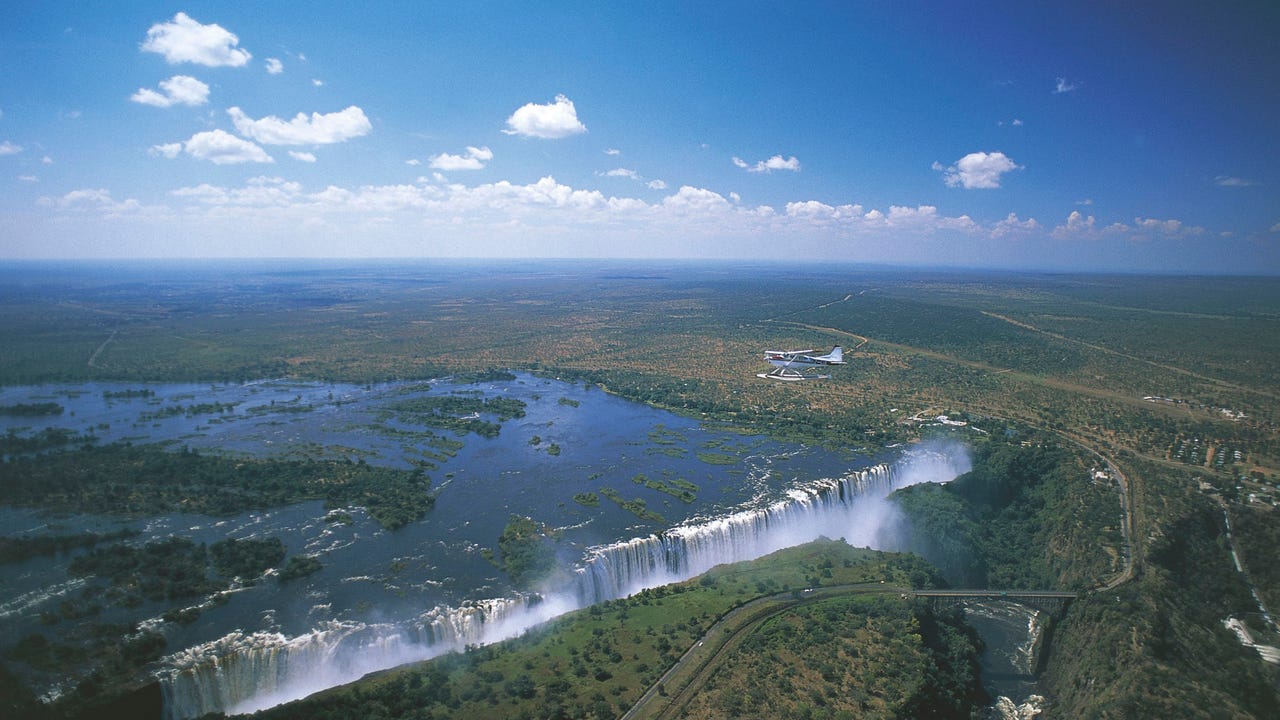 Aerial view of the Victoria Falls (UNESCO World Heritage List, 1989) on the Zambezi River, Zimbabwe. The river, which is the fourth-largest in Africa, borders several countries -- including Botswana. (Getty Images)