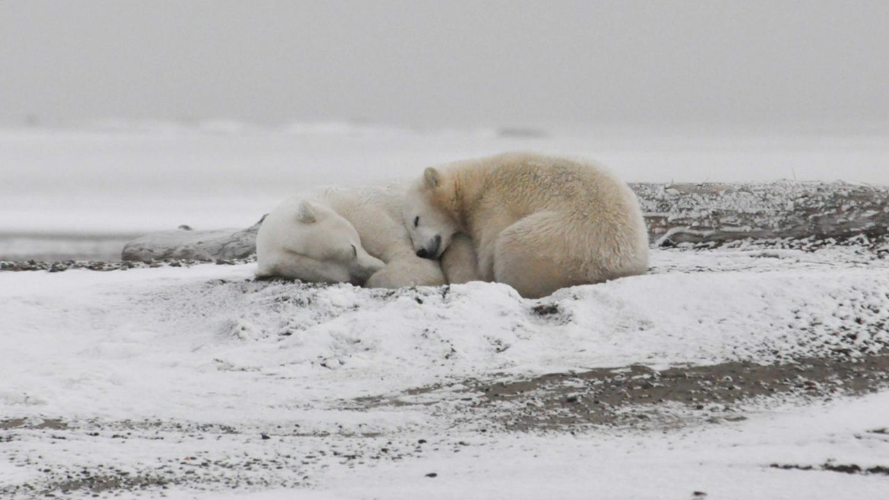 Polar bears sleep on the beach in the Arctic National Wildlife Refuge in early September waiting for the ice to form on the Arctic Ocean. (Credi: Michael Miller)