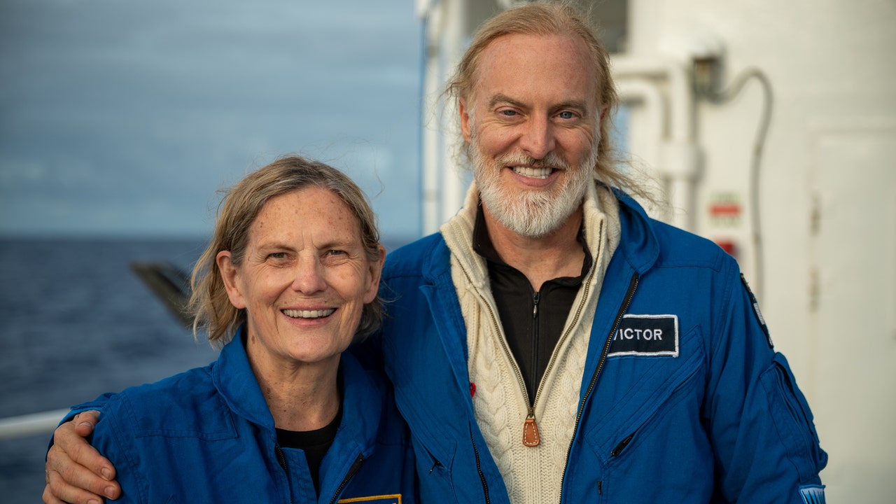Dr. Kathy Sullivan and Victor Vescovo pre-dive. (Enrique Alvarez)
