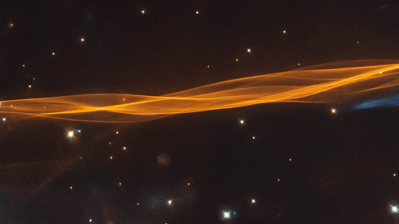 While appearing as a delicate and light veil draped across the sky, this image from the NASA/ESA Hubble Space Telescope actually depicts a small section of the Cygnus supernova blast wave, located around 2400 light-years away. (ESA/Hubble & NASA, W. Blair; acknowledgment: Leo Shatz)