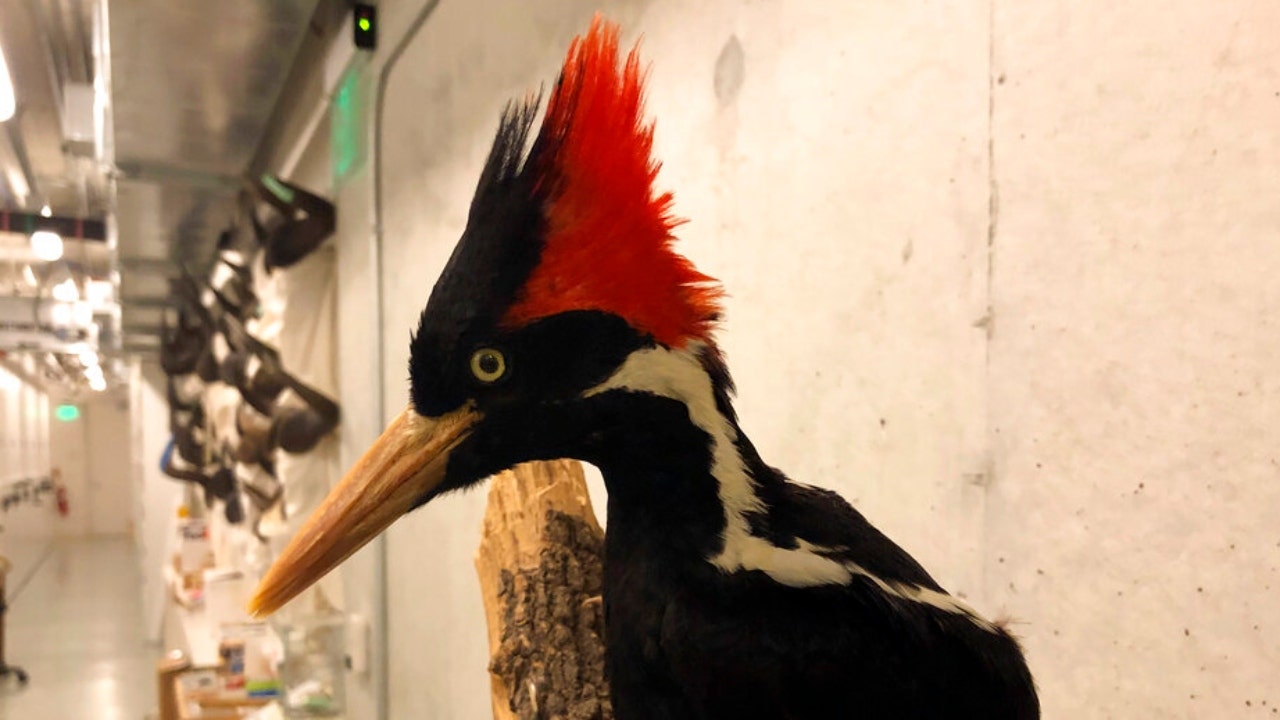 An ivory-billed woodpecker, now extinct, is seen on a display at the California Academy of Sciences in San Francisco, Friday Sept. 24, 2021. Death’s come knocking a last time for the splendid ivory-billed woodpecker and 22 assorted birds, fish and other species: The U.S. government is declaring them extinct, the Associated Press has learned. It’s a rare move for wildlife officials to give up hope on a plant or animal, but government scientists say they've exhausted efforts to find these 23. (AP Photo/Haven Daley)