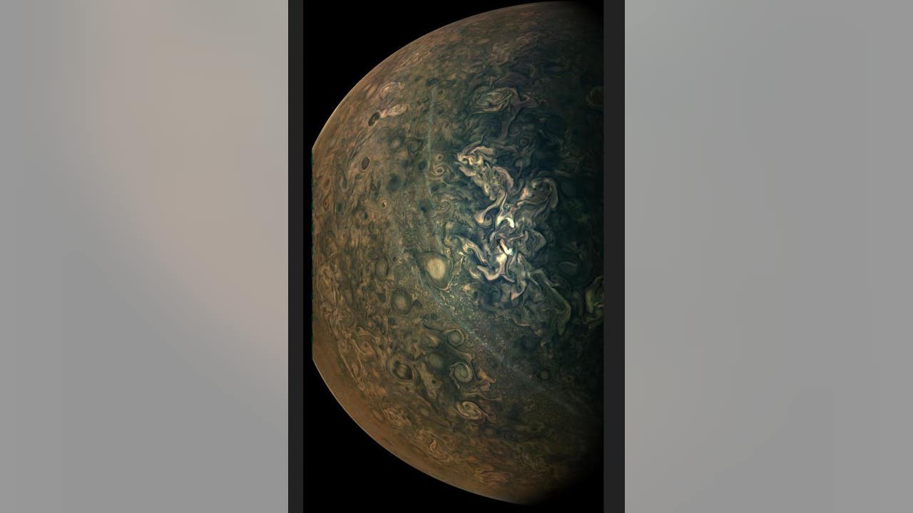 NASA's Juno mission captured a stunning image of Jupiter's tumultuous northern region during the spacecraft's approach to the planet earlier this year.